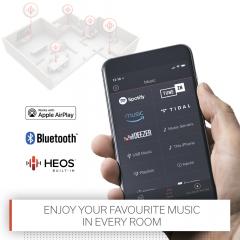 HEOS monihuone ominaisuuden avulla nautit lempimusiikistasi kaikkialla kotonasi, soita musiikkia vain yhdessä huoneessa tai soita eri huoneissa eri musiikkia. Jaa kotiverkkoon tallennettua musiikkia, kuuntele internetradiota tai striimaa suoratoistopalvelun kautta HEOS-kaiuttimillasi tai HEOS-varustetuilla vahvistimilla. Hallitse kokonaisuutta näppärästi puhelimella tai tabletilla HEOS sovelluksen kautta. HEOS-monihuoneääni on todella monipuolinen ja kätevä ratkaisu musiikin ystäville. Tuettujen suoratoistopalveluiden listalta löytyy mm. Spotify, TuneIn, Sound Cloud, TIDAL, Napster ja Deezer.
