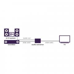Connect AE34 poimii äänisignaalin HDMI-lähteestä (audio de-embedding) ja lähettää sen HDMI-liitännän, digitaalisen Toslink-ulostulon tai analogisen 3,5 mm:n lähdön kautta vahvistimeen, viritinvahvistimeen, soundbariin tai aktiivikaiutinjärjestelmään. Videosignaali välittyy koskemattomana televisioon tai projektoriin.